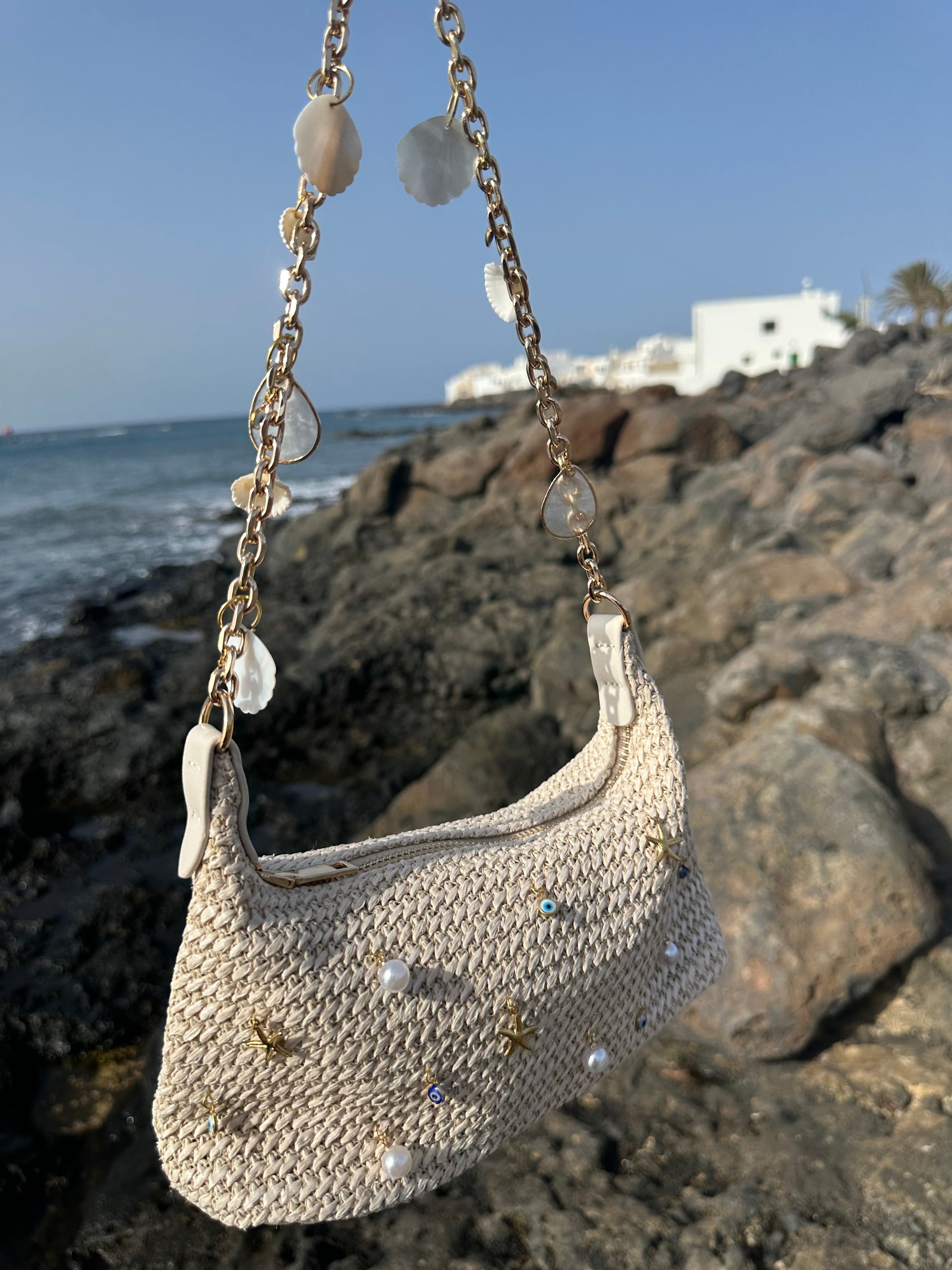 Evil Eye & Shell bag, available with charms on chain or without